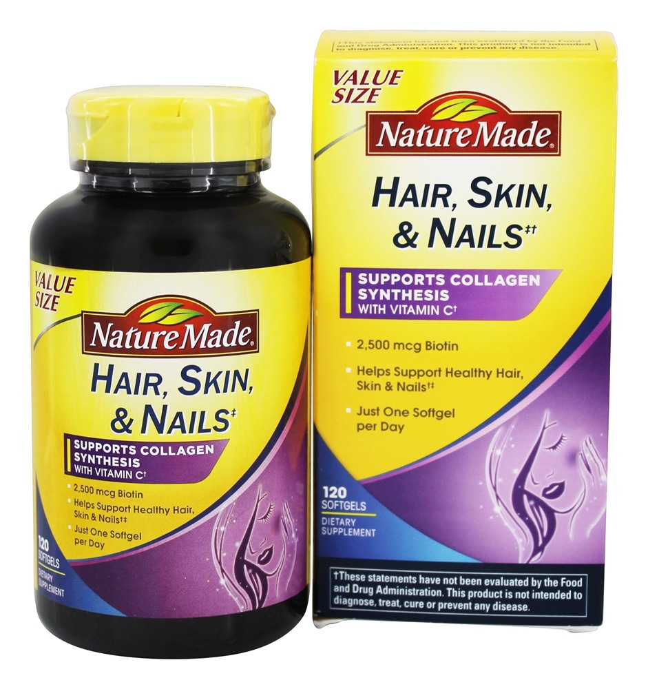 If the ingredient doesn't have scientific support, we didn't include it. Nature made® hair, skin and nails is formulated with five key nutrients for supporting healthy hair, skin and nails‡† in one small softgel. Nature made hair, skin and nails is formulated with five key nutrients for supporting healthy hair, skin and nails‡ in one small softgel. One compound with vitamins e and c in the formula is nature's bounty optimal solutions for hair, skin, and nails. At nature made, we've designed hair, skin and nail supplements like our biotin gummies which may help support healthy hair, skin and nails for those low in biotin.